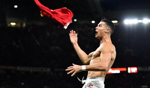 맨체스터 유나이티드의 크리스티아누 호날두가 30일 열린 유럽축구연맹 챔피언스리그 F조 2차전 비야레알과의 경기에서 극적인 역전골을 성공시킨 뒤 유니폼 상의를 던지는 세리머니를 펼치고 있다. 상의를 탈의한 호날두는 옐로카드를 받았다. EPA연합뉴스맨체스터 유나이티드로 옮긴 크리스티아누 호날두가 유럽축구연맹(UEFA) 챔피언스리그(UCL) 최다 출전(178경기)을 자축하는 역전 결승골을 터트리며 팀에 첫 승리를 안겼다.