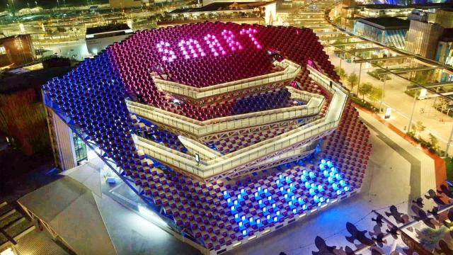 아랍에미리트 두바이에서 열리는 ‘2020 두바이 엑스포’가 1일 개막식을 시작으로 182일간의 대장정에 들어간다. 중동 지역에서 열리는 첫 엑스포로 지난해에 열릴 예정이었지만 코로나19 여파로 1년 연기됐다. 1일 개관하는 두바이 엑스포 한국관 외부 스핀큐브 모습. KOTRA 제공