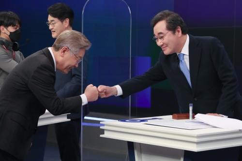 더불어민주당 대권주자 이재명(왼쪽) 경기도지사와 이낙연 전 민주당 대표가 30일 서울 TV조선에서 열린 방송토론회에 앞서 인사하고 있다. 민주당은 오는 2일 부산항국제전시컨벤션센터에서 부산·울산·경남 대선 순회 경선을 실시한다. 국회사진기자단더불어민주당 대선 후보 선출을 위한 ‘명낙 대전’의 명운을 가를 ‘PK(부산·울산·경남) 대전’이 하루 앞으로 다가왔다. ‘대장동 의혹’에도 선두를 굳건히 지키고 있는 이재명 경기도지사가 PK에서도 압승을 거두면 ‘결선 투표 없이 내년 대선 직행’의 9푼 능선을 넘게 된다. 반면 의원직 사퇴로 배수진을 친 이낙연 전 대표가 우세지역으로 꼽아 온 PK에서 다시 승기를 잡으면 이 지사 대세론에 제동을 걸면서 승부를 결선 투표까지 끌고 갈 불씨를 되살리게 된다. 사실상 ‘마지막 승부처’라는 공통된 인식 속에 양측 모두 ‘운명의 일전’을 벼르면서 결전지인 부산은 전운이 감돌고 있다.
