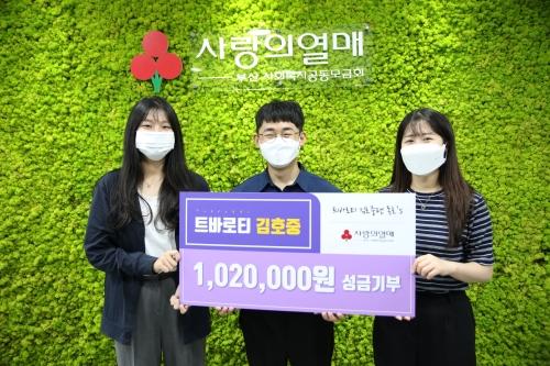 김호중 팬카페 ‘아리스’ 회원 4명이 최근 부산사랑의열매(회장 최금식)에 ‘트바로티’ 김호중의 생일(10월 2일)을 기념해 이웃돕기 성금 102만원을 전달했다. 이날 성금은 유년의 어려움을 이겨낸 김호중처럼, 이웃에게 희망을 전하기 위해 회원 4명이 별도로 마련했다. 회원들은 “앞으로도 매년 김호중 생일에 나눔을 실천할 예정이다”고 밝혔다. 이재희 기자