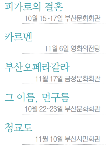 2023년 문을 열 예정인 부산오페라하우스의 성공적 건립을 기원하는 오페라 축제가 열린다. 2016년부터 시작된 ‘부산 오페라 위크(Busan Opera Week)’는 그동안 부산문화회관에서만 만날 수 있었는데 올해는 부산문화회관을 비롯해 금정문화회관, 영화의전당에서도 열려 부산 전역에서 오페라를 즐길 수 있게 됐다.