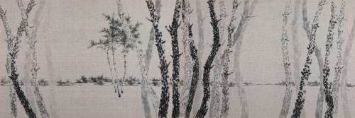 아마 천 위에 그린 수묵화