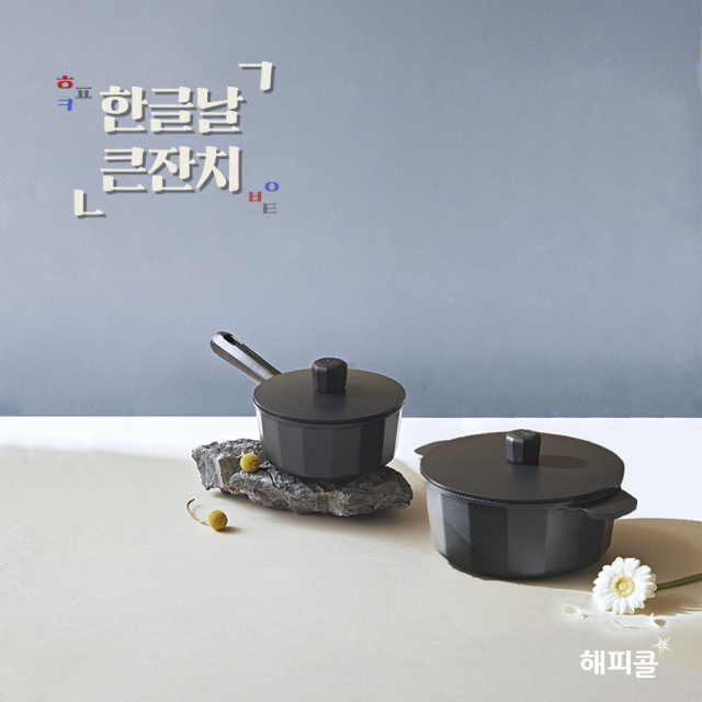 △해피콜은 한글날을 맞아 이달 12일까지 공식 인스타그램과 페이스북에서 '한글날 큰잔치' 이벤트를 진행한다. 한글날을 계기로 해피콜의 사명과 일상적 외래어인 프라이팬을 각각 우리말로 바꿔 보고, 일본식 주방용품 표현을 지양하자는 취지로 마련됐다. 이벤트는 인스타그램을 팔로우하거나 페이스북 페이지를 좋아요 한 후, '해피콜' 혹은 '프라이팬'을 한글화한 댓글을 남기면 누구나 참여할 수 있다. 인스타그램 이벤트 참여자에게는 추첨을 통해 1등 '앳지 블랑 아담한 인덕션 3종 세트(3명)', 2등 '플랑 IH 양손냄비(5명)', 3등 '플랑 IH 한손냄비(7명)' 등의 푸짐한 선물을 증정한다. 페이스북 이벤트 당첨자에게는 '플랑 IH 한손냄비(5명)'와 '플랑 IH 양손냄비(5명)'가 제공된다. 해피콜은 2019년부터 일본어식 주방용품 표현을 지양하고 한글로 바꾼 용어를 꾸준히 소비자에게 전파해오고 있다. 일본어 '편수'와 '양수'가 합쳐진 편수냄비와 양수냄비 대신, 한글 표현인 '한손냄비'와 '양손냄비'란 단어로 제품을 표기 중이다.