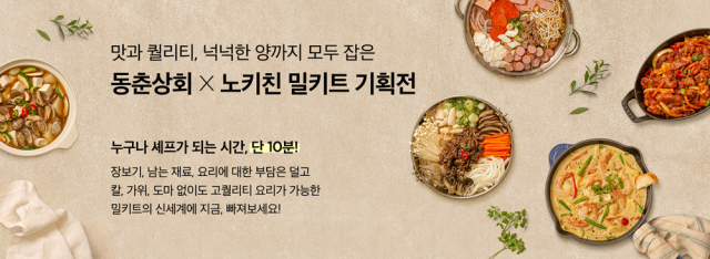 △세정의 라이프스타일숍 '동춘상회'가 밀키트 브랜드 '노키친'을 론칭하며 10월 한 달 동안 밀키트 기획전을 진행한다. 노키친은 37년 전통 식품 기업 승화푸드가 선보이는 밀키트 전문 브랜드로 맛과 품질을 보장한다. 기획전에서는 동춘상회의 식품 전문 MD가 엄선해 추천하는 노키친의 대표 밀키트 제품을 소개한다. 뜨끈하고 진한 국물과 단짠 불고기의 조화가 인상적인 버섯 가득 소불고기 전골, 우거지 청국장의 맛이 일품인 부뚜막 청국장 찌개, 밥도둑 차돌박이 순두부 찌개 등 다양한 한식 종류와 중식, 양식, 분식 등 총 23종의 밀키트 제품을 만나볼 수 있다. 론칭 기념으로 다양한 혜택도 마련한다. 10월 한 달 동안 금액 무제한 5% 할인 쿠폰 증정, 밀키트 묶음 세트 구매 시 집 반찬 1종을 제공하는 혜택은 오직 동춘상회에서만 받을 수 있다. 동춘상회 공식 온라인몰에서 구매 가능하다.