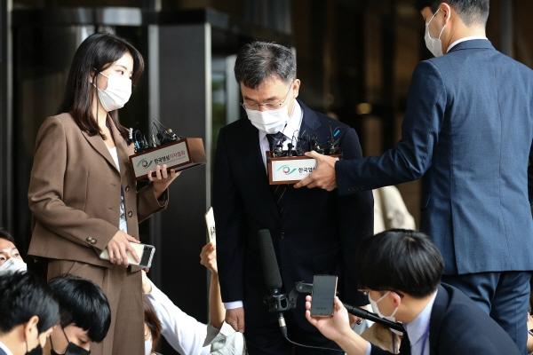 대장동 특혜 의혹의 핵심인물인 화천대유 대주주 김만배 씨가 피의자 신분으로 조사를 받기 위해 11일 서울 서초구 서울중앙지방검찰청으로 출석하며 고개 숙여 인사하고 있다. 김종호 기자 kimjh@이재명 경기지사가 여당 대선후보로 선출되면서 내년 3·9 대선 최대 뇌관으로 꼽히는 ‘대장동 개발 특혜 의혹’이 여야 전면전으로 치닫는 모습이다.