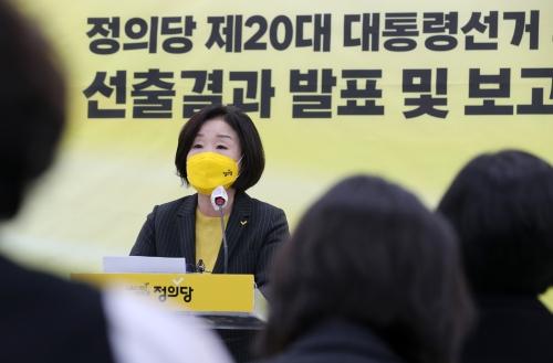 정의당은 이날 국회에서 ‘제20대 대통령선거 후보자 선출결과 발표 및 보고대회’를 갖고 결선투표 결과 총 투표수 1만 1993명 중 심 의원이 6044표(득표율 51.12%)로 대선 후보로 확정됐다고 밝혔다. 이 전 대표는 불과 264표 차인 5780표(48.88%)로 패배했다. 심 의원은 수락연설을 통해 “이번 대통령선거에서 심상정과 정의당의 승리가 곧 시민의 승리가 될 수 있도록 제 남은 열정을 모조리 쏟아붓겠다”고 포부를 밝혔다. 그는 이어 더불어민주당과 국민의힘을 향해 “대장동 특혜 의혹 사건의 본질은 34년 동안 번갈아 집권하면서 부동산 기득권이 한몸이 되었다는 것을 의미한다”며 “그럼에도 거대 양당이 책임 공방하며 삿대질 정치로 날 새는 줄 모른다. 그러나 국민의 눈에는 공모자들끼리 책임 전가하는 것으로밖에 보이질 않는다”고 싸잡아 비판했다.