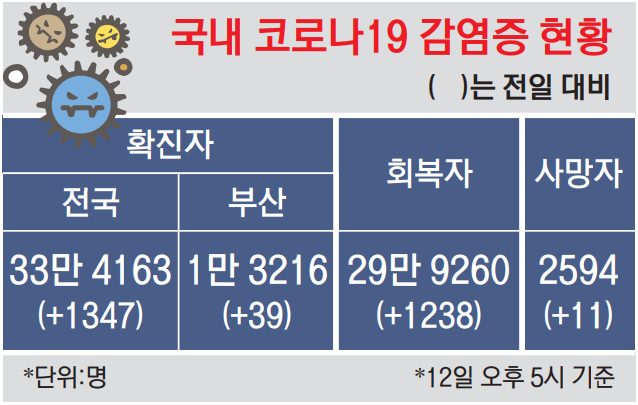감염 상황이 비교적 안정적이다. 부산은 이번 거리 두기 조정 때 단계가 낮아지거나 방역 규제가 상당수 완화될 가능성이 높다. 12일 부산의 신규 확진자 39명으로, 30~40명 안팎의 하루 확진자 추세를 이어갔다. 이달 들어 부산의 하루 확진자는 37.9명으로, 2단계(하루 34~67명) 수준이다. 이날 경남에서도 30명(김해 15명, 창원 4명, 사천·함안 각각 3명, 양산 2명, 진주·통영·창녕 각각 1명), 울산에서는 7명이 확진됐다. 전반적으로 부울경에서는 비교적 안정적인 상황이 이어지는 상황이다.