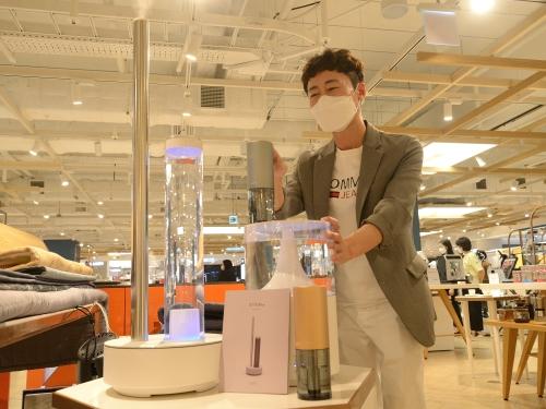 롯데백화점 부산본점 6층 ‘린나이’ 매장에서 항균 기능이 탑재된 가습기를 선보이고 있다. 가습기 수조 내에 설치된 항균 플레이트가 물 속 곰팡이나 세균을 제균한다. 롯데쇼핑 제공