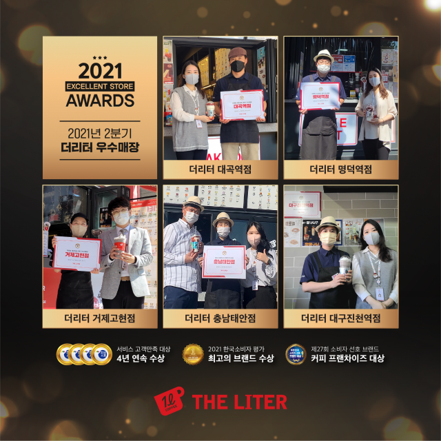 커피 프랜차이즈 카페 더리터는 동반성장과 상생경영의 일부로 '2021년도 분기 우수매장' 5곳을 선정했다.