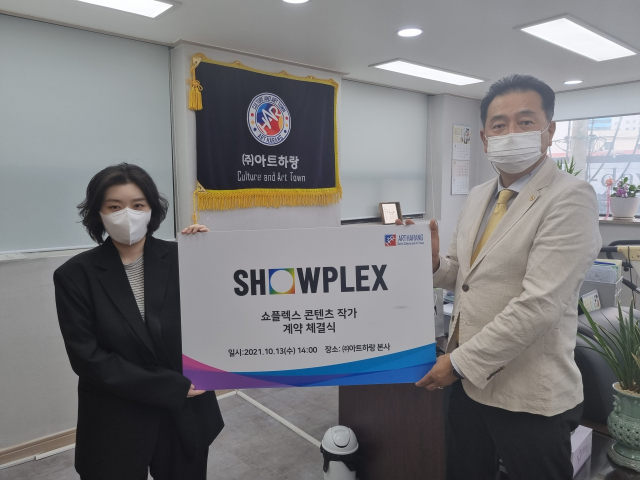 쇼플렉스 시행사인 (주)아트하랑(대표 이상목)은 지역 청년예술인 우거진 작가와 지난 13일 아트하랑 본사에서 ‘쇼플렉스 콘텐츠 개발 관련 계약’을 체결했다. 이번 계약은 쇼플렉스가 추구하는 지역사회 연계형 콘텐츠 기획·지원, 민간·공공기관·예술인 간의 협업체계 구축, 시민과 예술인의 창작활동·창업 지원이라는 취지에서 진행됐다.
