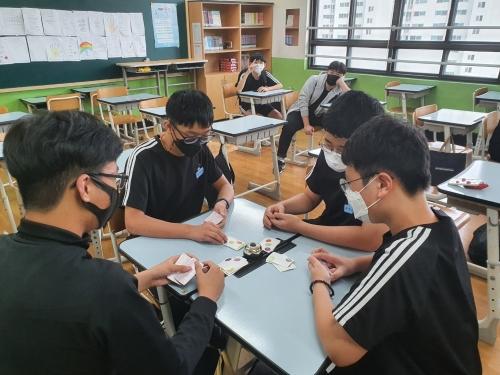 장평중 학생들이 방과후 ‘창의적 체험동아리’ 시간에 카드 게임 놀이를 하고 있다.코로나19가 장기화되면서 청소년들이 매사에 무기력감에 빠지고 답답함을 호소하는 ‘코로나 블루’ 증상을 보이고 있다. 신체적 활동이 가장 왕성한 시기에 반강제적으로 행동의 반경을 줄이는 데서 오는 스트레스 탓이다. 이 때문에 학교 현장에서는 온라인을 중심으로 다양한 활동을 개최하며 코로나 블루 극복을 위한 노력을 기울이고 있다.
