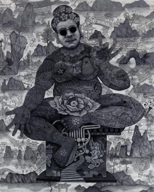 부처상 형태의 자화상은 깨달음과 고뇌의 상징인 부처상을 빌어와 인간 욕망과 삶에 대한 물음을 던지는 과정을 표현했다. 중간중간 등장하는 악기 이미지는 그림과만 대화를 해 온 권 작가가 뿜어내고 싶은 소리를 상징한다. 가끔 악기에 날짜가 새겨진 것이 있는데 이것은 작가의 사인이다. “작품 완성 뒤 남기는 사인이 그림을 해칠 것 같아 악기나 그림 속 이미지 안에 새겨 넣었습니다.”