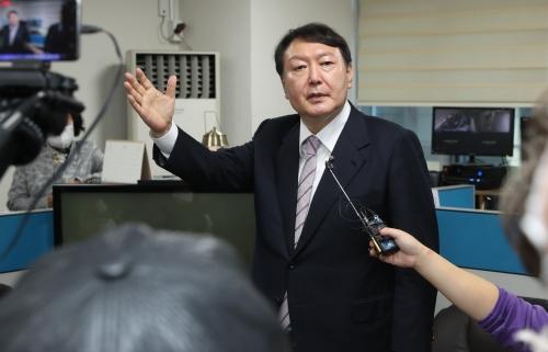 국민의힘 대권주자 윤석열 전 검찰총장이 19일 부산 해운대갑 당협사무실을 방문해 당원들에게 인사말을 하고 있다. 정대현 기자 jhyun@국민의힘 대권주자인 윤석열 전 검찰총장이 19일 전두환 전 대통령과 관련해 "정치는 잘했다고 하는 분들도 있다"는 옹호성 발언을 해 논란이 일고 있다. 파장이 커지자 윤 전 총장은 "정치를 다 잘했다는 게 아니라 권한의 위임이라는 측면에서 그 후의 대통령도 배울 점이 있다는 뜻"이라고 진화에 나섰으나, 여권은 물론 국민의힘 내에서도 "호남을 능멸했다", "단순 실언이 아닌 역사인식의 문제"라는 비판이 쏟아졌다.