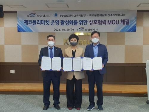 K-water 남강댐지사(지사장 정연수), 진주교육지원청(교육장 박영주), 학교운영위 진주지역협의회(회장 박진규)는 최근 에코 플리마켓 활성화 업무협약을 체결했다.