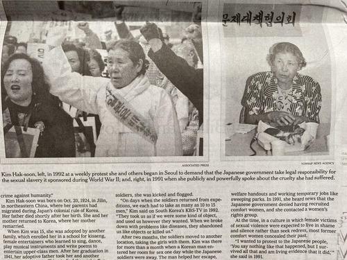 NYT “김학순 할머니, 20세기 가장 용감한 인물”