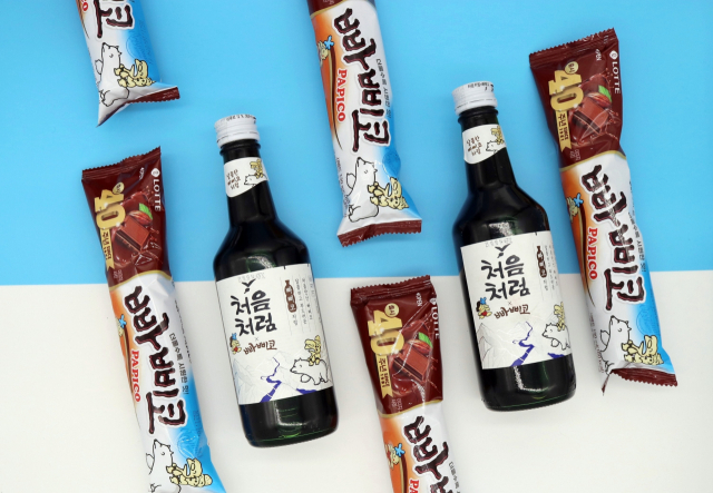△롯데칠성음료가 대표 소주 브랜드 '처음처럼'과 초콜릿 아이스크림의 대명사 '빠삐코'를 컬래버레이션한 '처음처럼X빠삐코'를 선보인다. 롯데칠성음료는 최근 MZ세대를 중심으로 다양한 콘셉트의 브랜드간 협업 제품에 대한 관심이 늘어난 것에 착안, 처음처럼의 부드러움에 색다른 즐거움을 더하기 위해 출시 후 40년 동안 소비자에게 꾸준한 사랑을 받아온 빠삐코와 함께 처음처럼X빠삐코를 기획했다. 11월 초에 선보일 처음처럼X빠삐코는 처음처럼에 빠삐코의 초콜릿향과 맛을 더한 리큐르 제품으로 처음처럼 본연의 부드러움과 초콜릿의 달콤함, 빠삐코의 상징인 박수동 화백의 '고인돌 가족'이 더해진 제품 라벨 등 맛과 재미를 더했으며, 알코올 도수는 기존 소주 제품보다 낮은 12도다.