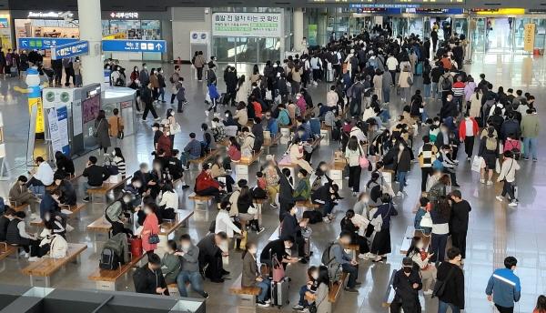 ‘단계적 일상회복(위드 코로나)’ 시행을 하루 앞둔 31일 오후 부산역 대합실이 열차 이용객들로 붐비고 있다. 이번 시행으로 자영업자 등 코로나 19로 큰 피해를 입었던 시민들의 일상 회복에 대한 기대감과 확진자 확산에 대한 우려가 교차하고 있다. 강선배 기자 ksun@단계적 일상 회복, 일명 ‘위드 코로나’ 1단계가 드디어 시작됐다. 주요 방역 수칙이 큰 폭으로 완화돼 일상이 코로나19 이전으로 한 걸음 더 가까워졌다. 사적모임은 12명까지 가능하고, 다중이용시설의 영업 제한도 대부분 없어졌다.