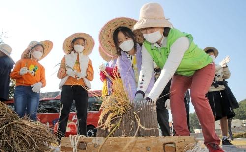 [포토뉴스] 아이들아, 벼 탈곡은 이렇게 하는 거란다