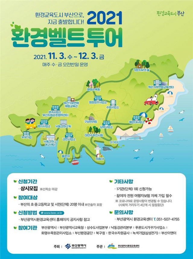 이근희 부산시 녹색환경정책실장은 “이번 환경벨트 투어를 시작으로 부산의 다양한 환경교육 프로그램을 시민들에게 안전하게 제공하여, 정체되었던 부산의 환경교육에 활력을 불어넣겠다”라고 전했다.