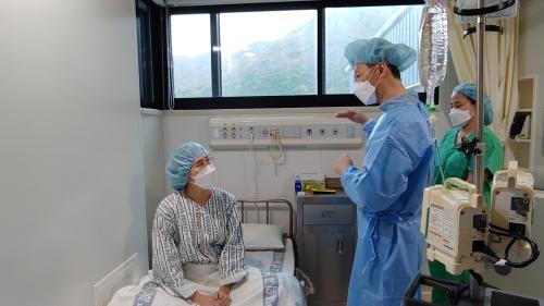동아대병원 혈액종양내과 김성현 교수가 혈액암 환자에게 조혈모세포 이식에 대해 설명하고 있다. 동아대병원 제공동아대병원 혈액종양내과 김성현 교수는 혈액암 환자의 조혈모세포 이식에 탁월한 능력이 있다. 글로벌 임상연구 경험도 풍부하다. 환자에게 친절하면서도 명쾌하게 설명을 잘 해주는 의사로 정평이 나 있다.