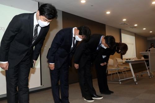 지난달 25일 발생한 통신장애와 관련해 서창석 KT 네트워크 혁신 TF장과 임원진들이 1일 인터넷 장애 관련 ‘재발방지대책 및 보상안’ 발표에 앞서 인사를 하고 있다. 연합뉴스KT가 지난달 25일 발생한 통신장애와 관련한 ‘전담지원센터’를 5일 가동했다. 14일부터는 감면금액을 확인할 수 있는 서비스를 가동한다.