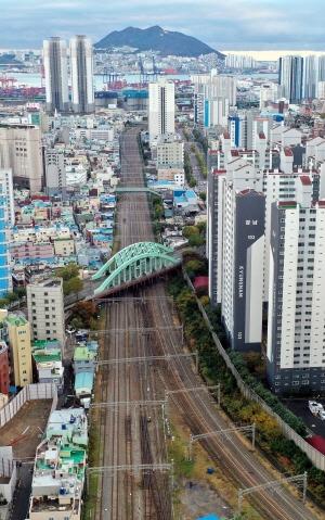 부산시가 정부안에 미반영된 경부선 지하화 실시계획 용역비 추가 확보에 나섰다. 사진은 부산진구 범천동과 동구 범일동 도심 사이를 지나가는 경부선 철길. 정종회 기자 jjh@부산의 ‘동서단절 100년’을 해결할 사업으로 기대감을 불러일으켰던 경부선 철도 지하화에 난항이 거듭되고 있다. 당초 부산시와 여권은 경부선 지하화 사업을 속도감 있게 추진하겠다고 공언했으나 예산 확보 과정 등에서 연달아 ‘높은 벽’에 부딪혀 '전략이 없다'는 비판이 나온다.