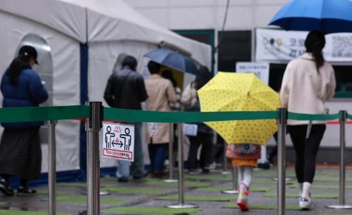 9일 서울 강남구보건소 감염병관리센터 선별진료소를 찾은 시민들이 검사를 받기 위해 차례를 기다리고 있다. 연합뉴스국내 코로나19 위중증 환자가 나흘째 400명대를 기록했고, 사망자도 8일째 두 자릿수로 나오고 있다. 위드 코로나 전환 뒤 중증 환자와 사망자 증가를 최대한 억제하겠다는 방역 당국의 계획이 초기부터 흔들리는 것이다.