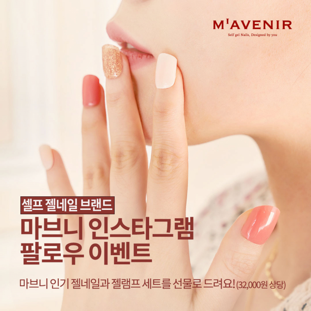△셀프 젤네일 브랜드 마브니가 인스타그램 오픈 기념 '인스타그램 팔로우 이벤트'를 오는 21일까지 진행한다. 마브니 셀프큐어링 네일은 신축성과 색의 밀도가 높고 손톱의 손상은 최소화한 제품으로 많은 소비자가 자신의 개성과 기분에 따라 고품질의 젤네일을 사용해볼 수 있는 기회를 제공하고자 이벤트를 기획했다. 이벤트 참여는 마브니 공식 인스타그램 계정을 팔로우하고 마브니 인기 제품 9종 중 사용해보고 싶은 제품명을 댓글로 남기면 된다. 추첨을 통해 선정된 당첨자에게는 직접 선택한 젤네일 제품 1종과 1만 8000원 상당의 젤램프까지 총 3만 2000원 상당의 셀프 젤네일 세트를 선물로 제공한다. 당첨자는 총 100명이며, 당첨자 발표는 이달 24일이다. 추가 이벤트로 제품을 받은 후 우수 리뷰를 남겨준 10명을 선정해 마브니 사이트에서 제품 구매 시 사용 가능한 1만 포인트도 추가 증정한다.