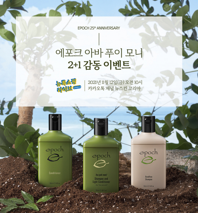 △뉴스킨 코리아가 에포크 브랜드 25주년을 기념해 '에포크 헤어 케어 제품' 2개 구매 시 1개를 추가 증정하는 이벤트를 진행한다. 오는 12일 오전 10시부터 뉴스킨 코리아 카카오톡 채널 '뉴톡쇼핑 라이브'를 통해 단 하루 진행된다. 이번 이벤트는 에포크 제품과 사은품을 패키지로 구성해 정상가 대비 약 35% 할인가로 판매한다. '댄드프리 샴푸'와 '아바 푸이 모니 샴푸 앤 라이트 컨디셔너 250mL' 구매 시 △아바 푸이 모니 컨디셔너 250mL △하트리프 핸드 세니타이저 겔(에탄올) △미니 헤어 브러쉬를 증정하며, 선착순 125명에겐 '뉴식이 피규어'를 추가로 제공한다. 에포크는 수 세기에 걸쳐 내려온 민속 식물학의 지혜를 현대 기술과 결합한 뉴스킨의 스킨케어 라인이다. 헤어 케어 제품은 폴리네시아 섬 지역의 토착 원주민들이 건강한 두피와 모발을 위해 전통적으로 사용해온 것으로 알려진 '아와푸히즙'과 부드럽고 윤기 있는 모발로 케어해주는 '판테놀', 건조한 모발에 보습감을 선사하는 '인도멀구슬나무잎추출물'이 공통적으로 함유됐다. 손쉬운 셀프 홈케어가 가능한 제품이라는 점도 특징이다. 댄드프리 샴푸는 징크피리치온을 함유해 두피 가려움과 비듬, 과도한 유분을 집중 관리할 수 있으며, 아바 푸이 모니 샴푸 앤 라이트 컨디셔너는 헤어 클렌징과 컨디셔닝을 동시에 할 수 있는 2in1 제품이다. 아바 푸이 모니 컨디셔너는 풍부한 보습과 영양을 공급해 손상된 모발을 보호해준다.