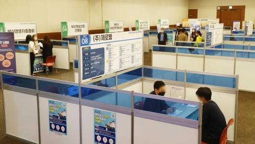 한국 대졸 청년 취업률이 OECD 국가 가운데 최하위권에 그친다는 조사 결과가 나왔다. 사진은 부산 해운대구 벡스코에서 청년들을 대상으로 진행된 한 채용박람회. 부산일보DB우리나라 대졸 청년의 취업률이 경제협력개발기구(OECD) 국가 37개국 중 31위에 그칠 정도로 저조하다는 분석이 나왔다.