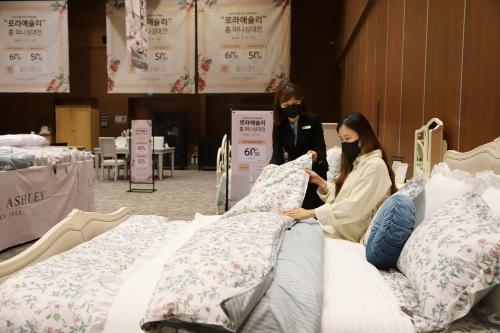 신세계 센텀시티 9층 문화홀에서는 다음 달 1일까지 침구, 가구, 인테리어 소품 등 영국 홈 디자인 브랜드 ‘로라애슐리’의 제품들이 30~60% 할인 판매된다. 신세계 센텀시티 제공