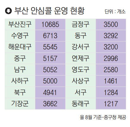 18일 현재 중구청에 따르면 8월 기준 부산시에서 안심콜 서비스를 사용하는 등록업소는 6만 5463개에 달한다. 전국적으로도 지자체 243곳 중 218곳이 해당 서비스를 이용 중이다.