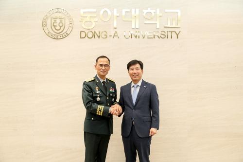 동아대학교(총장 이해우·오른쪽)는 동아대 총동문회(회장 신정택), 117ROTC 총동문회(회장 조성제)와 함께 ‘학군단 리모델링 기념행사 및 남영신(왼쪽) 육군참모총장 특강’을 개최했다.