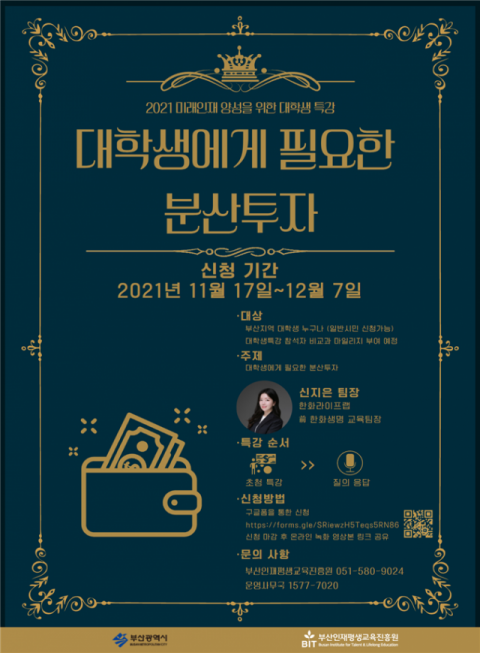 부산시-부산인재평생교육진흥원, 대학생 특강 ‘대학생에게 필요한 분산투자’ 개최