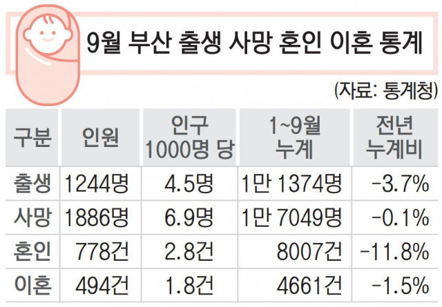 9월 부산 신생아 1244명… 10년 전 절반 수준