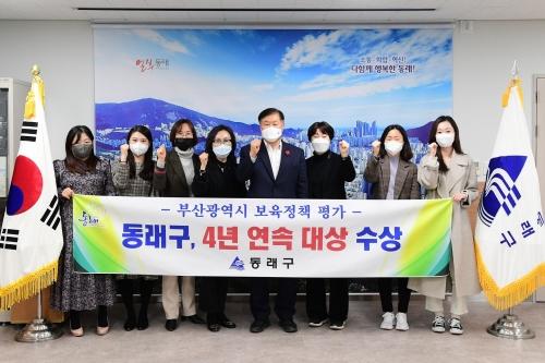 부산 동래구청(구청장 김우룡)은 부산광역시 주관 2021년 구·군 보육정책 추진 평가에서 ‘대상’을 수상했다고 지난 26일 밝혔다.