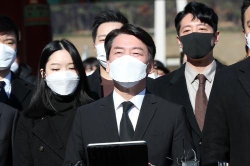 국민의당 안철수 대선후보가 28일 오전 광주 국립 5·18 민주묘지를 방문해 기자회견을 하고 있다. 오른쪽은 같은 날 서울 마포구 가온스테이지에서 열린 청년정의당 선거대책위원회 출범식에 참석한 정의당 심상정 대선후보. 국회사진기자단·연합뉴스