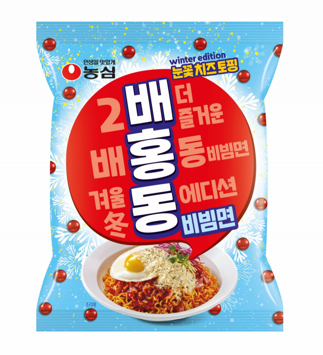 △농심이 겨울에도 색다르게 즐길 수 있는 '배홍동비빔면 윈터에디션'을 출시했다. 기존 제품의 참깨 토핑을 눈꽃 치즈 토핑으로 바꿔 색다른 맛과 모양을 연출한 것이 특징이다. 눈꽃 치즈 토핑은 카망베르와 체다, 파마산 등 세 종류의 치즈를 혼합해 고소한 맛과 향을 극대화했다. 치즈의 풍미가 비빔면 소스의 매콤한 맛과 색다른 조화를 이뤄낸다는 평이다. 면과 소스를 비빈 후 눈꽃 치즈 토핑을 뿌리면 마치 비빔면 위에 눈이 내린 듯한 비주얼이 연출된다. 디자인도 겨울 시즌에 맞게 새 옷을 입었다. 눈꽃문양을 디자인 요소로 추가하고 '2배 더 즐거운 배홍동비빔면 겨울 冬(동) 에디션'이라는 문구를 넣었다.