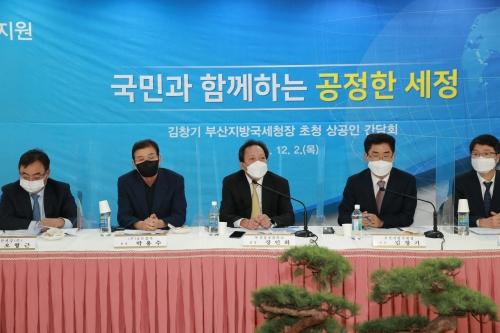 부산상공회의소는 20일 김창기 부산지방국세청장을 부산상의로 초청해 지역 상공인 20여 명과 함께 기업 애로를 청취하는 간담회를 가졌다. 이번 간담회는 코로나19의 장기화로 어려움을 겪고 있는 지역 기업들의 세정 관련 애로사항을 세무당국에 직접 전달하기 위해 마련됐다. 이날 간담회에서 부산상의와 지역 기업들은 세제 관련 기업 애로사항 9가지 건의사항을 부산지방국세청에 전달했다.