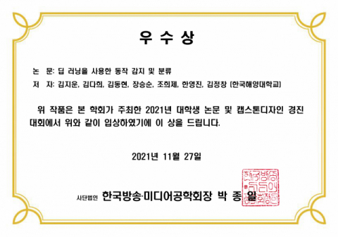 한국해양대 전자통신공학전공 학생들, ‘한국방송‧미디어공학회 2021년 추계학술대회 대학생 논문 및 캡스톤디자인 경진대회’ 우수논문상 수상