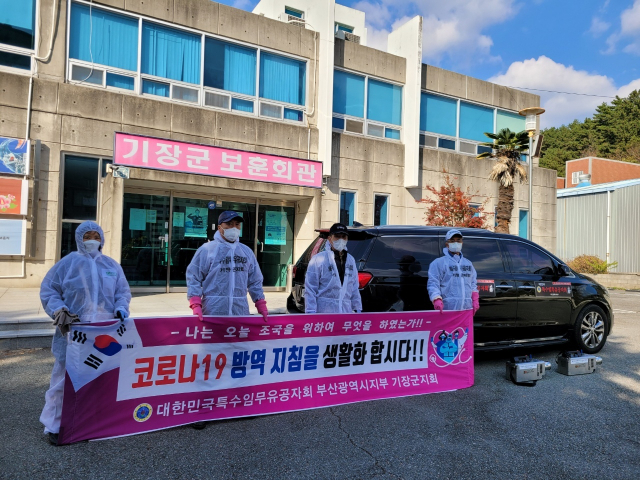 대한민국특수임무유공자회 부산광역시지부(지부장 김석종)는 최근 기장군 보훈회관, 새마을 공원 등에서 코로나19 지역사회 확산방지를 위한 방역활동을 실시했다.