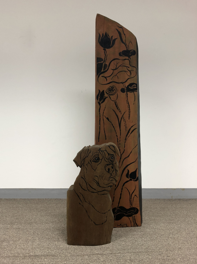 이번에 소개하는 ‘108’은 소외된 존재들에 대한 작가의 애정과 관심이 묻어나는 조각 작품이다. 윤석남은 1025마리의 유기견들을 돌보는 이애신 할머니의 사연을 접한 후 이들의 삶을 나무 조각에 각인하기 시작했다. 나무를 깎고 다듬는 것부터 유기견의 모습을 그려 넣는 일련의 제작 과정들은 버려진 생명들에 대한 애도의 행위이기도 하다.