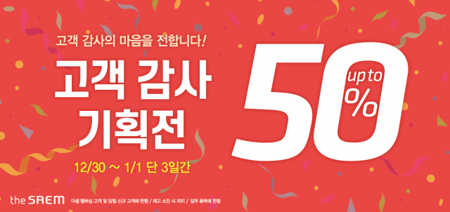 △글로벌 에코 더샘이 최대 50% 할인하는 '고객 감사 기획전'을 오는 30일부터 1월 1일까지 진행한다. 선명한 컬러와 빛나는 광택이 오랜 시간 유지되는 '글로우 스테이 틴트'와 '에코 소울 피그먼트 섀도우' 등 연말 시즌을 빛나게 해줄 다양한 메이크업 제품과 거칠어진 바디 피부를 촉촉하게 관리해줄 '어반 딜라이트 바디 솔트 스크럽·워시'와 '터치 온 바디 버터'를 40~50% 할인한다. 푸석하고 생기 잃은 피부에 진한 영양을 공급해주는 '스네일 에센셜 이엑스 링클 솔루션'과 '골드 리프팅' 등 집중 탄력 케어 라인과 남성 피부를 위한 '에코 에너지 올인원 수딩 에센스', '클래식 옴므' 등은 20~30% 할인 판매한다. 마스크 프루프 쿠션 '트루 핏 픽서 쿠션'와 우수한 지속력과 커버력의 '커버 퍼펙션 컨실러' 라인은 10~20% 할인한다. 2in1 섀도우 스틱 '글로우 스테이 스틱 섀도우'와 두피와 모발 손상을 최소화한 '실크 헤어 컬러 크림 새치 커버'도 20% 할인된 가격에 만날 수 있다. '더마 플랜 센서티브 수딩 트리트먼트'을 포함해 '힐링 티 가든 클렌징 코튼 패드', '스튜디오 슬림 핏 파운데이션', '플로우 립 벨벳 무스' 등 더샘의 대표 비건 라인과 홀리데이 감성을 담은 2021 리미티드 에디션 '퍼퓸드 핸드 스페셜 세트' 등은 10~20% 할인을 적용했다. 더샘 매장·공식 온라인 통합 쇼핑몰인 '힐리브몰'에서 동시에 진행된다.
