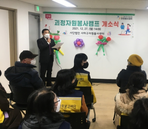 부산 사하구자원봉사센터(센터장 황명옥)는 12월 27일 오후 괴정2동 고개마루사랑방에 괴정 자원봉사캠프를 개소했다. 이번 개소로 사하구에는 총 7개의 캠프가 생겼다.