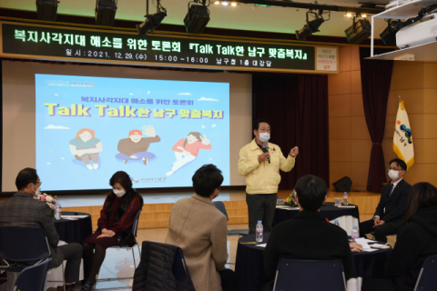 부산 남구(구청장 박재범)는 지난 12월 29일 남구청 1층 대강당에서 남구 내 6개 복지관에 종사하는 사회복지사 및 관련 공무원 등 40여명이 참여한 가운데 「Talk Talk한 남구 맞춤복지」 토론회를 개최하였다.