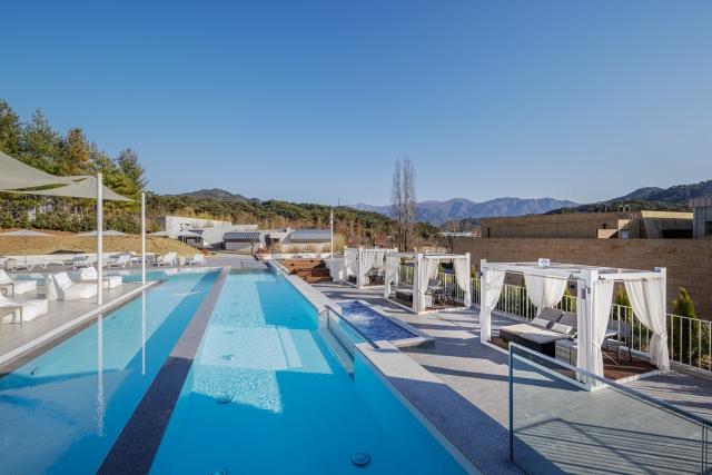 새롭게 선보인 가든풀은 데크 아일랜드를 중앙에 품은 'ㅁ(미음)' 형태의 '메인 풀(Main pool)'을 비롯해 '머메이드 풀(Mermaid pool)', '자쿠지 앤 카바나 존(Jacuzzi & cabana zone)', '파이어 플레이스 존(Fire place zone)' 등으로 구성돼 사계절 완벽한 힐링을 제공한다. 수영장은 이용객들이 언제나 안락하게 즐길 수 있도록 동계기간에는 35℃ 내외의 따뜻한 온수풀로 운영된다.