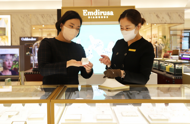 신세계 센텀시티 1층에 다이아몬드 주얼리 ‘엠디루사’가 신규 오픈했다. ‘엠디루사’는 다이아몬드와 18K 골드의 조합으로 고급스러운 디자인의 브라이덜 라인과 합리적인 가격대의 쁘띠 다이아몬드 라인이 전문이다. 신세계 센텀시티 제공