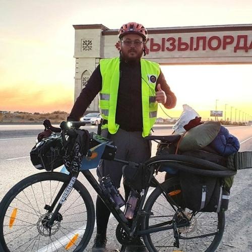 카자흐스탄 유명 여행가인 다미르 쿠쉬에예프 씨가 오는 8일부터 나흘간 부산~서울 자전거 순례를 시작한다. 지난해 카자흐스탄 독립 30주년을 기념해 카자흐스탄 국토 종주에 나선 쿠쉬에예프 씨.