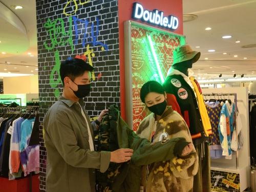 롯데백화점 부산본점 7층에서는 스트릿 의류 브랜드 ‘더블 제이디’가 팝업 스토어를 운영 중이다. 오는 30일까지 10만원 이상 구매 시 모자 또는 털 목도리를 증정한다. 롯데백화점 제공