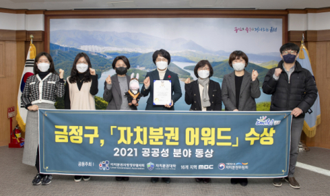 부산시 금정구(구청장 정미영)는 19일 자치분권지방정부협의회, 16개 지역 MBC, 자치분권대학, 대통령소속 자치분권위원회에서 공동 주최하는 ‘2021 자치분권 어워드’에서 정책 공공성 부문 동상을 수상했다고 밝혔다.